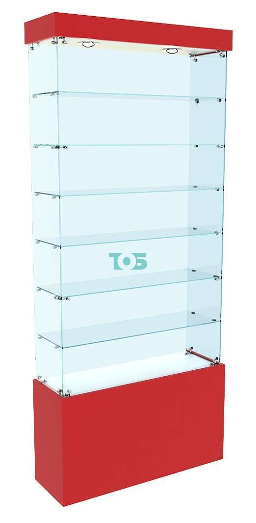 Отличия модели стеклянной витрины узкой для аптеки первой линии RED-131: