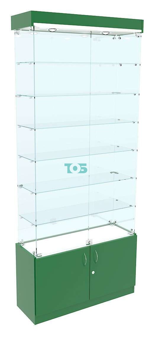 - прозрачная узкая витрина с шестью стеклянными полками;