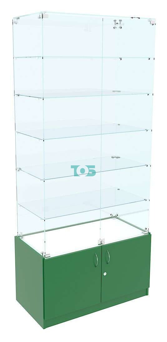 Отличия модели стеклянной витрины с хромированными замками для аптеки с дверками ИЗУМРУД-505: