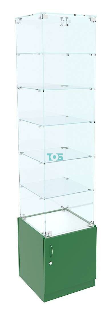Отличия модели стеклянной витрины с крепежами для аптеки с дверками ИЗУМРУД-506: