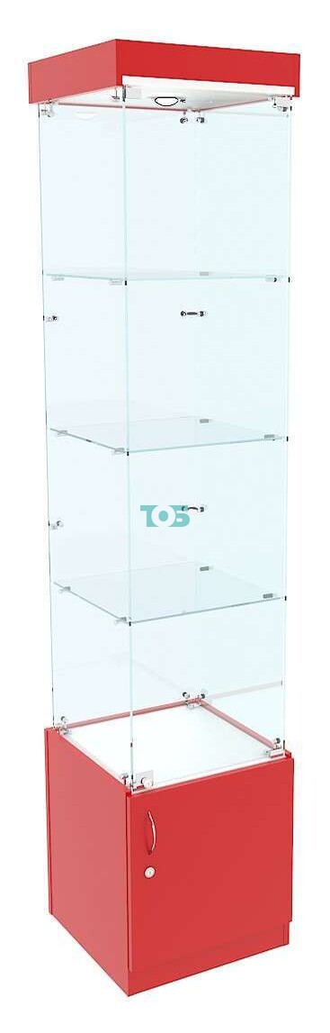 Отличия модели стеклянной витрины с накопителем для аптеки с дверками RED-02: