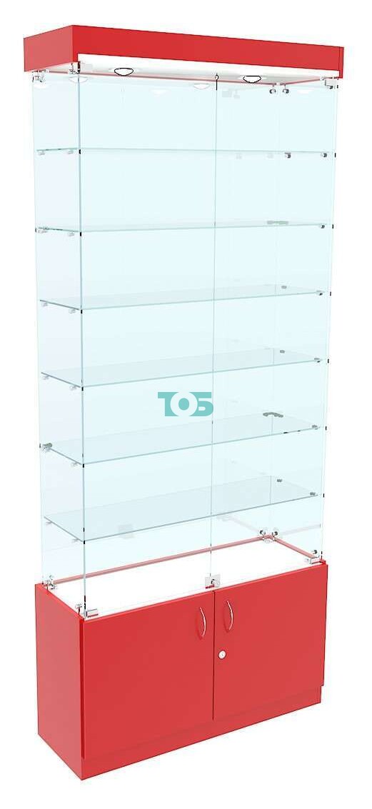 - прозрачная узкая витрина с шестью стеклянными полками;