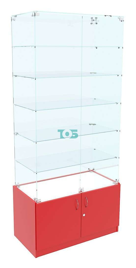 Отличия модели стеклянной витрины с хромированными замками для аптеки с дверками RED-505: