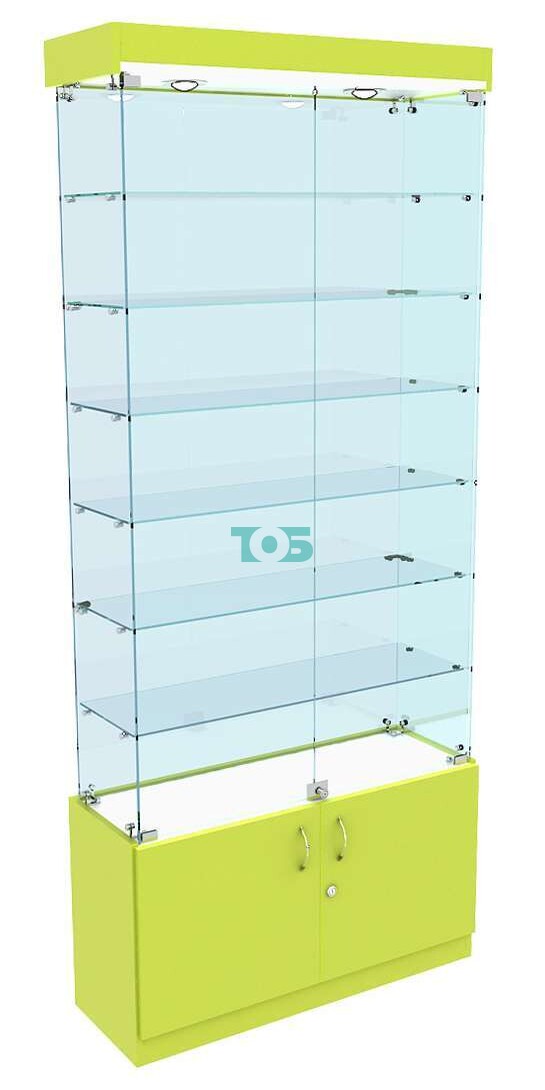- прозрачная узкая витрина с шестью стеклянными полками;