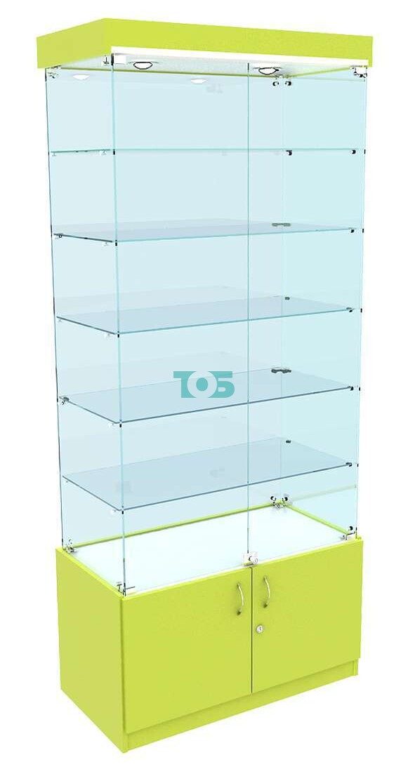 Отличия модели стеклянной витрины с верхней подсветкой для аптеки с дверками MEDIC-СВИ-501: