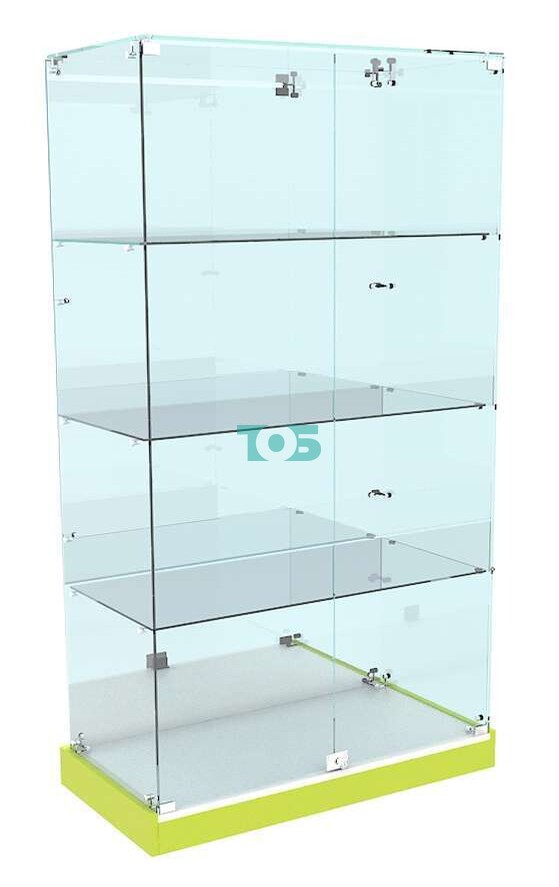- стеклянная витрина в центр зала для аптеки из ламинированного ДСП и стекла надежная и удобна в использовании. Она изготавливается из современных и качественных материалов, также способна максимально выгодно представить ассортимент аптечного товара. Прозрачные торцы витрины обеспечивают максимальную воздушность торгового зала аптеки. Витрина используется как низкий островной модуль в торговом зале аптеки и запирается на ключ;