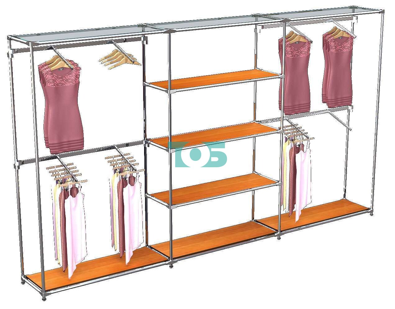 Отличия модели торговой системы ХРОМ без ДСП 3600 мм с полками ДСП и поручнями №5: