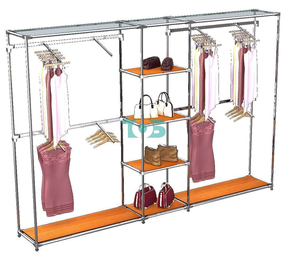 Отличия модели торговой системы ХРОМ без ДСП 3030 мм с полками ДСП и поручнями №8: