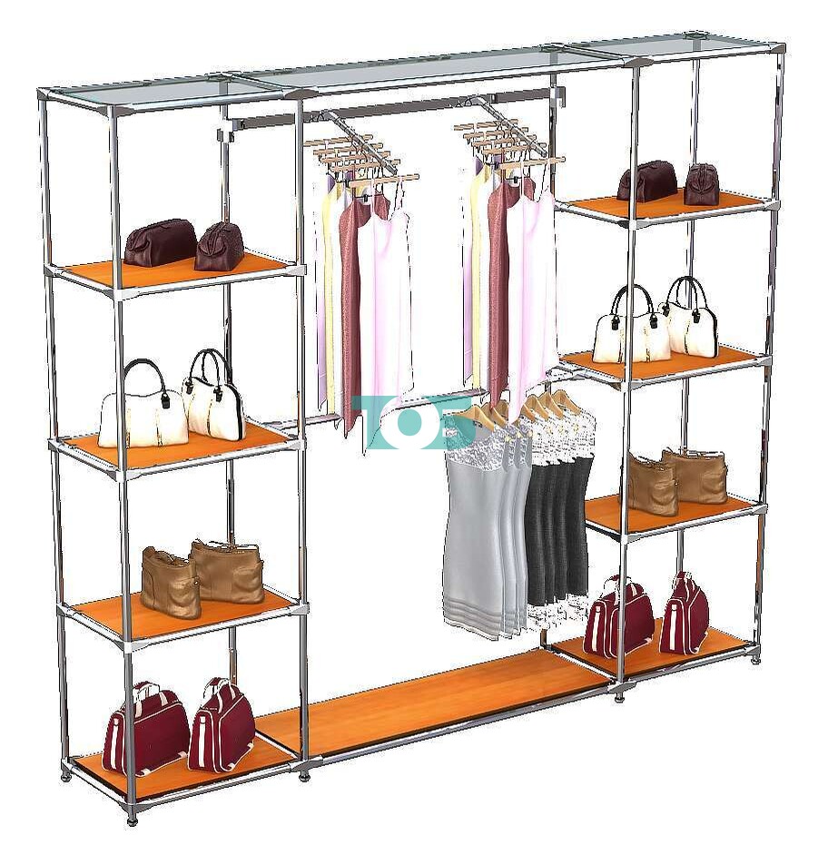 Отличия модели торговой системы ХРОМ без ДСП 2430 мм с полками ДСП и поручнями №11: