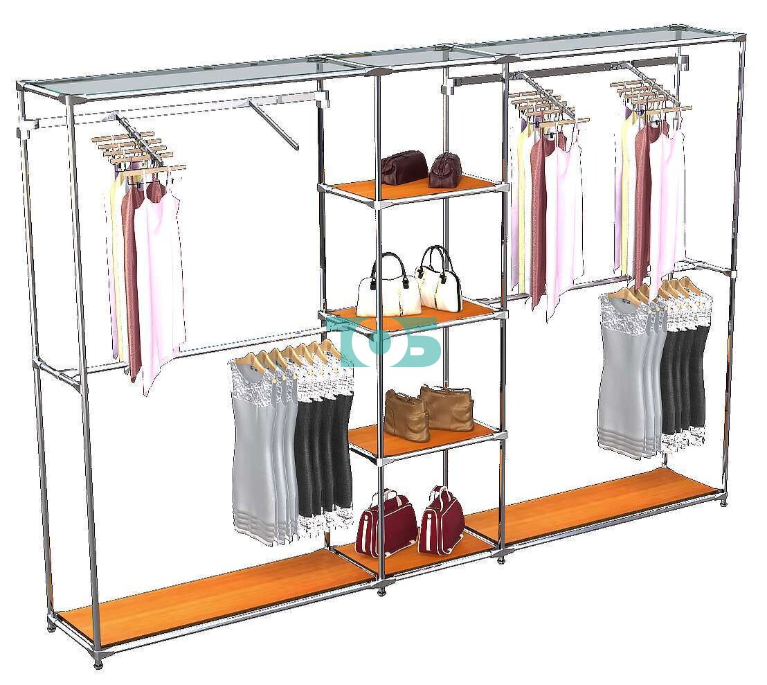 Отличия модели торговой системы ХРОМ без ДСП 3030 мм с полками ДСП и поручнями №12: