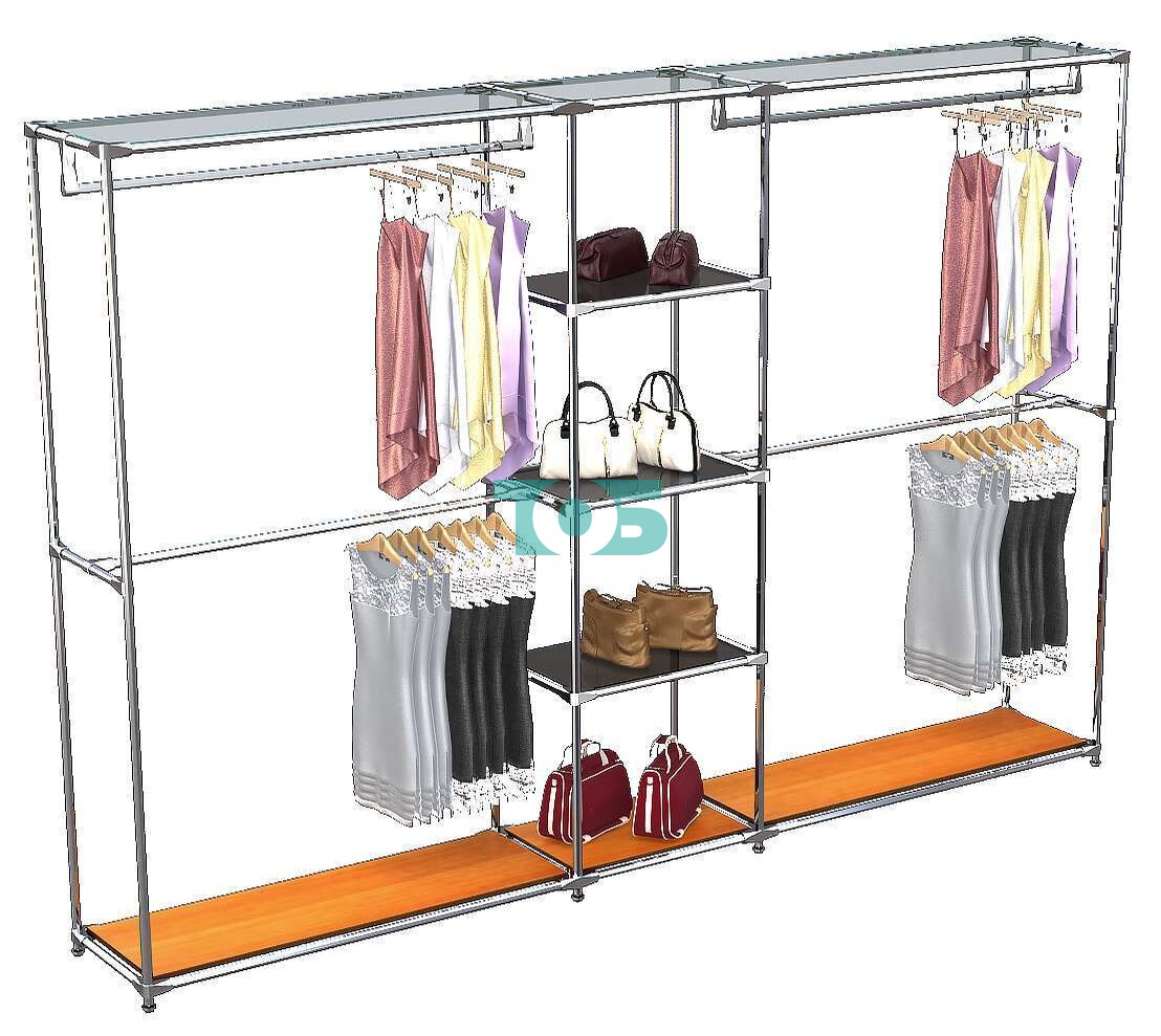 Отличия модели торговой системы ХРОМ без ДСП 3600 мм с тонированными полками и поручнями №4: