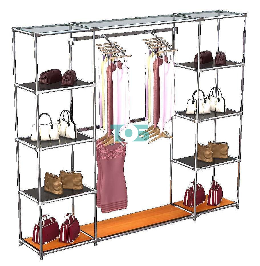 Отличия модели торговой системы ХРОМ без ДСП 3600 мм с тонированными полками и поручнями №7: