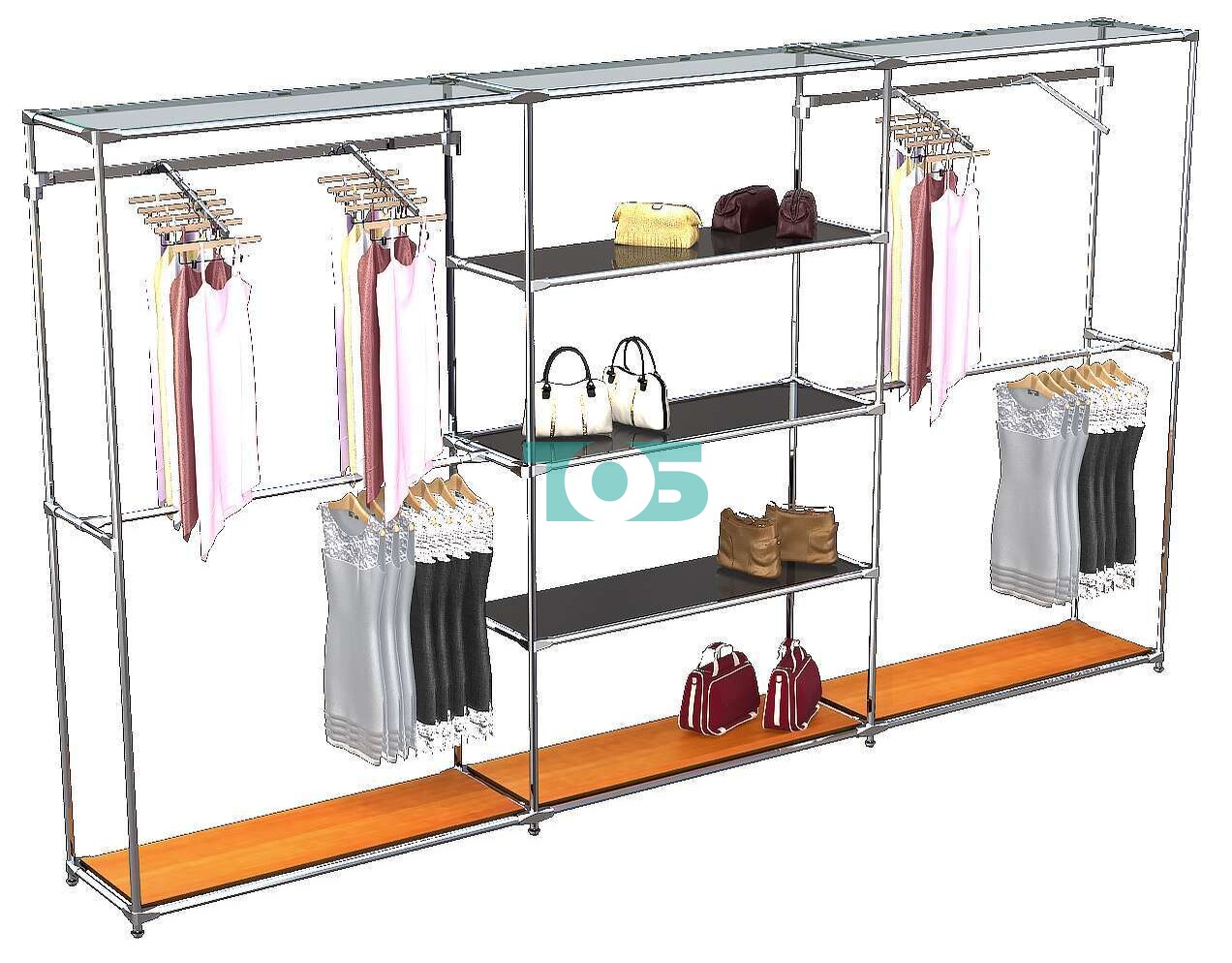 Отличия модели торговой системы ХРОМ без ДСП 3600 мм с тонированными полками и поручнями №10: