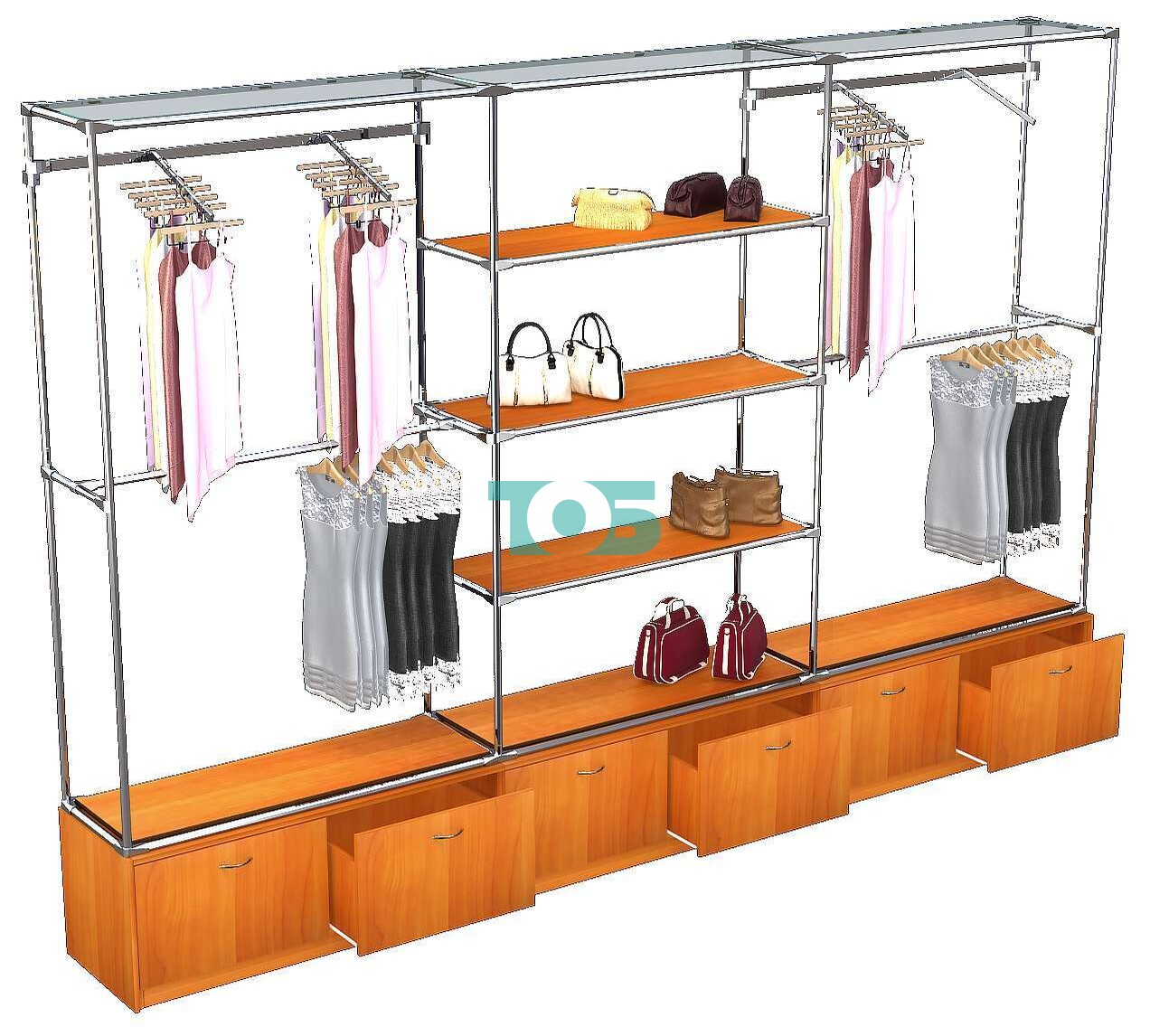 - в центральном блоке три полки ДСП 16 мм для одежды;