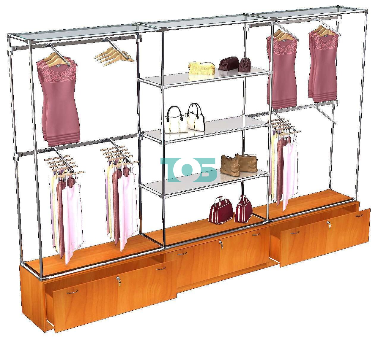 - в центральном блоке три зеркальные полки для одежды;