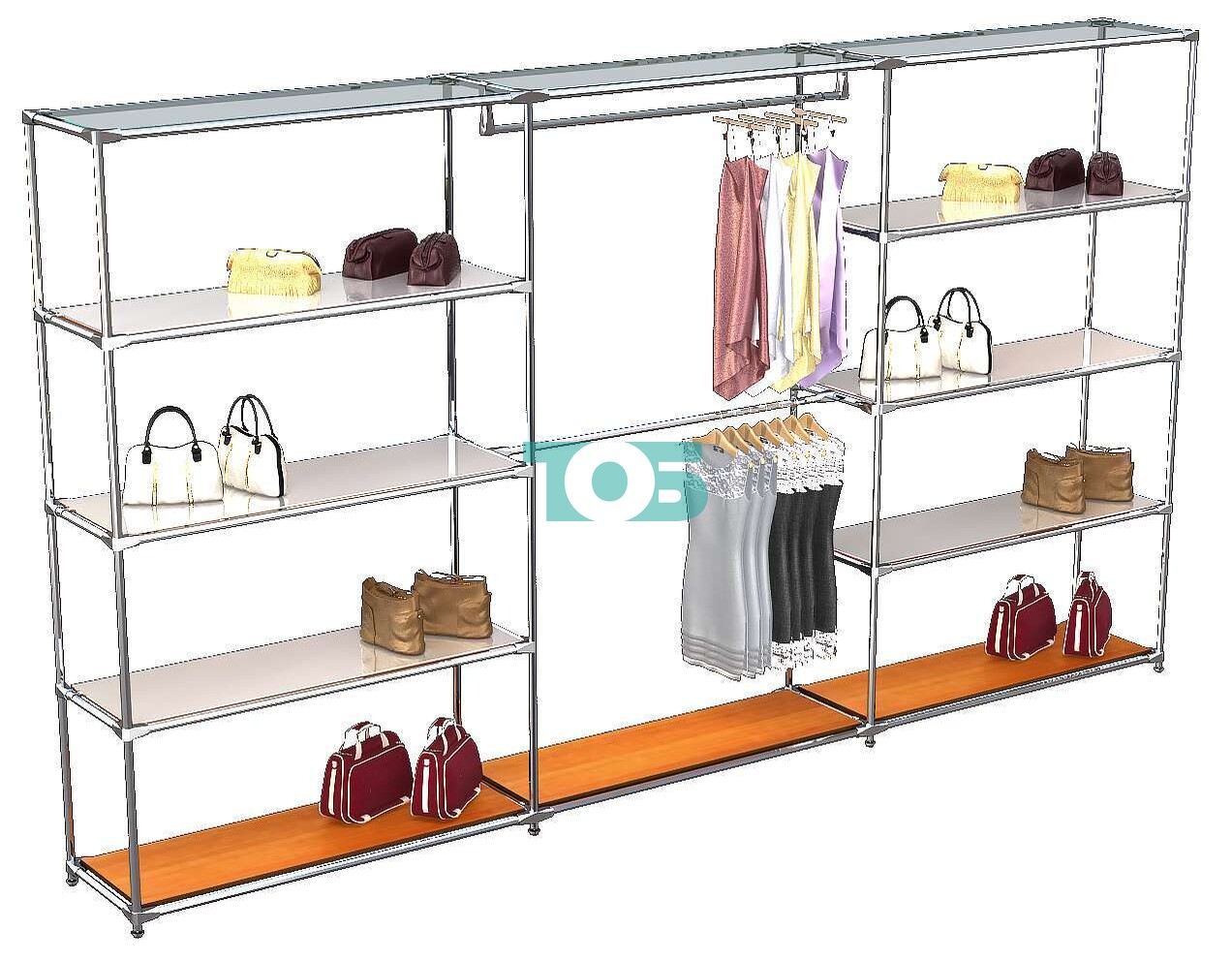 Отличия модели торговой системы ХРОМ без ДСП 3600 мм с зеркальными полками и поручнями №1:
