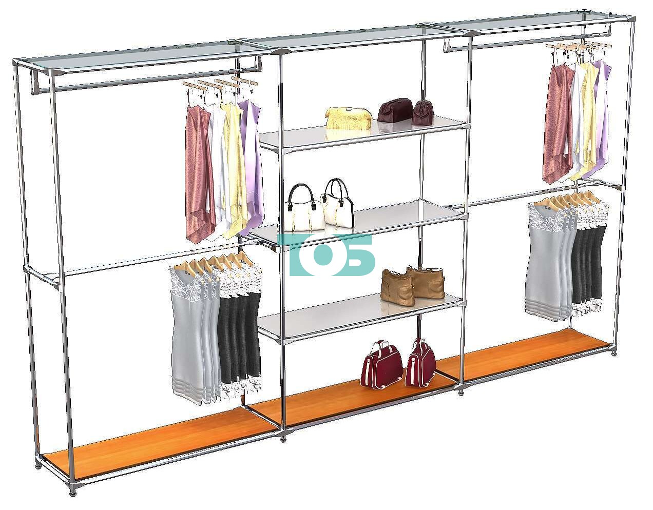 Отличия модели торговой системы ХРОМ без ДСП 3600 мм с зеркальными полками и поручнями №2: