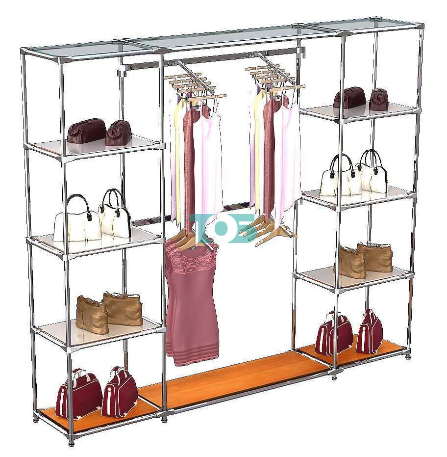 Отличия модели торговой системы ХРОМ без ДСП 2430 мм с зеркальными полками и поручнями №7: