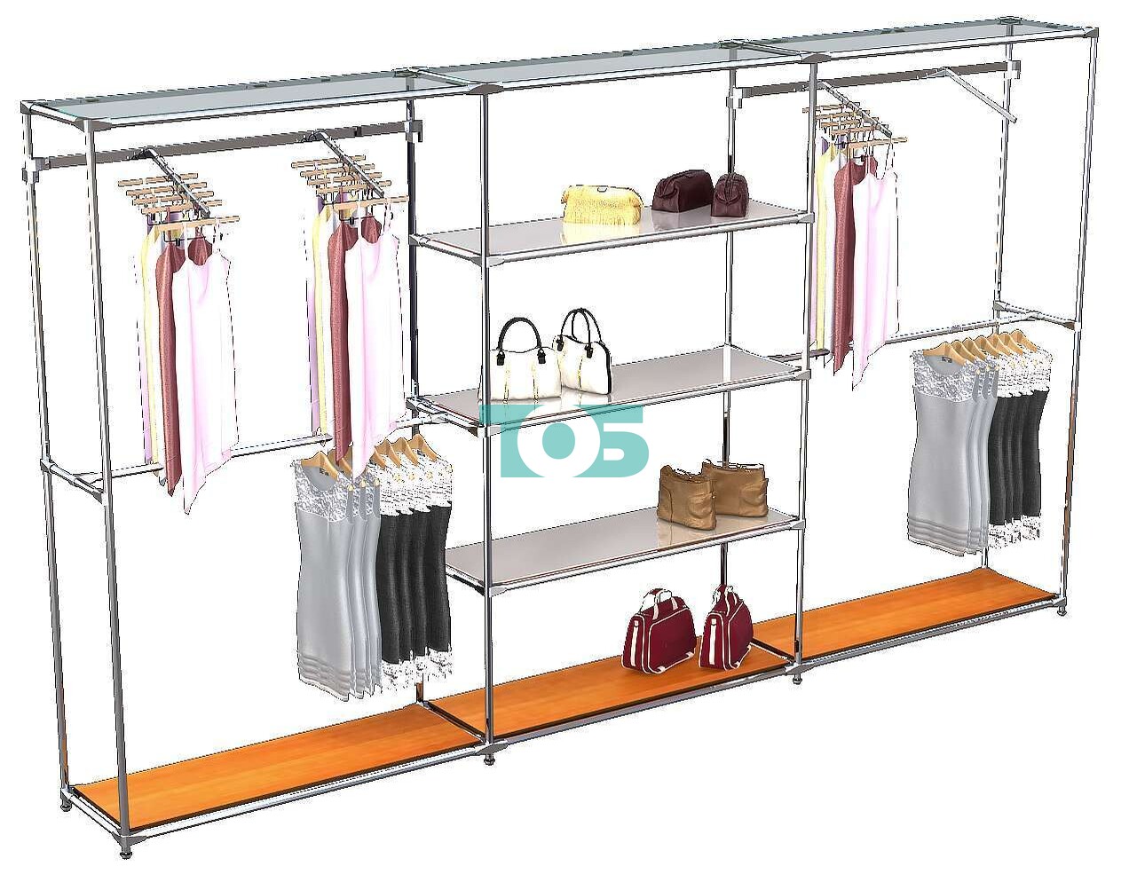 Отличия модели торговой системы ХРОМ без ДСП 3600 мм с зеркальными полками и поручнями №10: