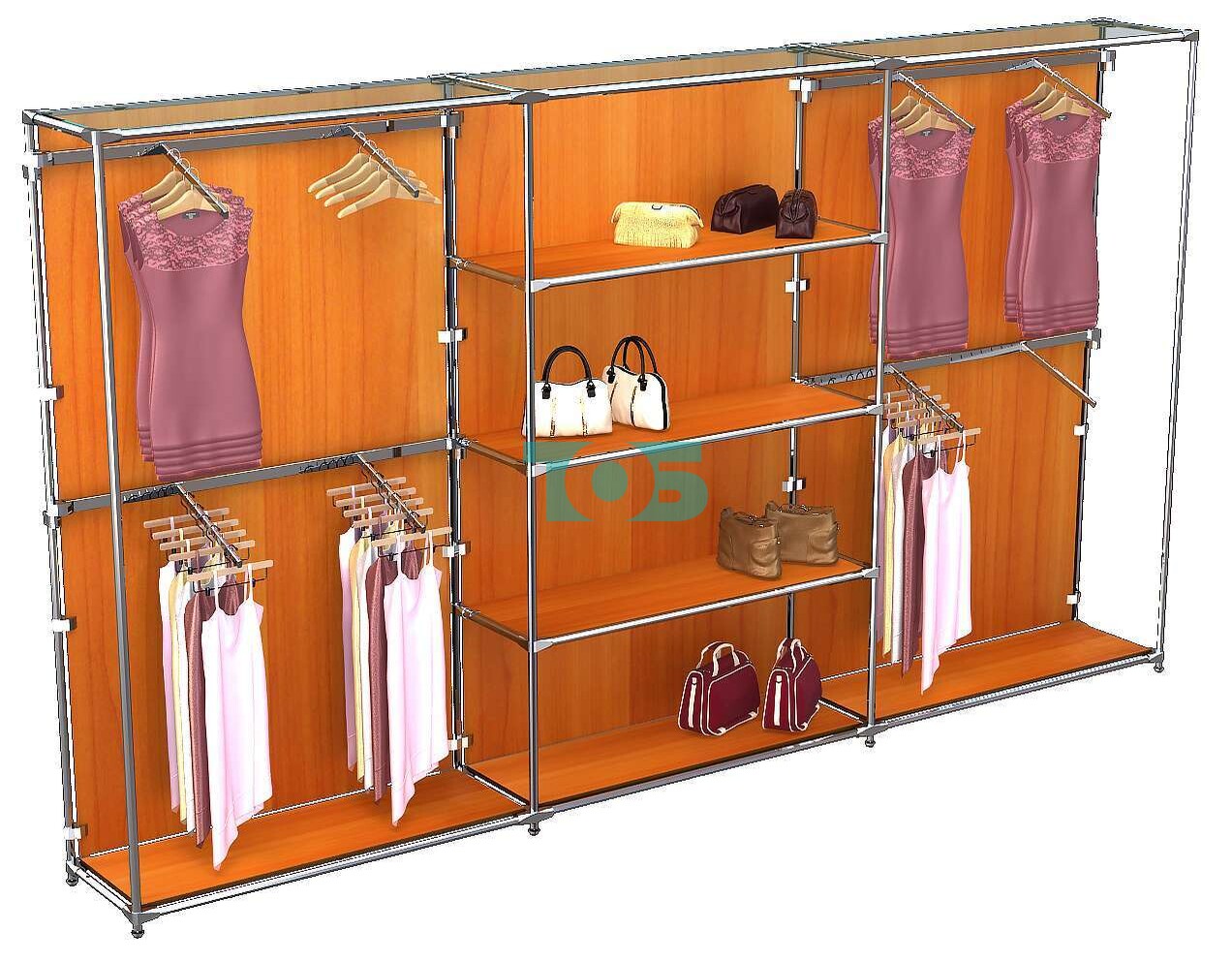 Отличия модели торговой системы ХРОМ (задняя стенка - ДСП) 3600 мм с полками ДСП и поручнями №5:
