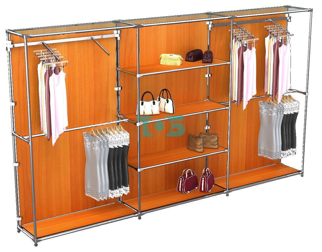 Отличия модели торговой системы ХРОМ (задняя стенка - ДСП) 3600 мм с полками ДСП и поручнями №10: