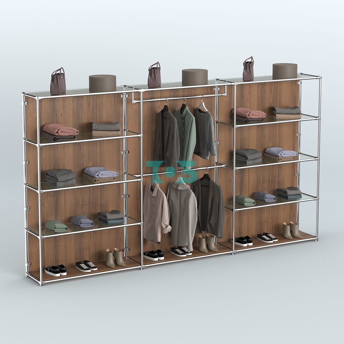 Отличия модели торговой системы ХРОМ (задняя стенка - ДСП) 3600 мм с прозрачными полками и поручнями №1: