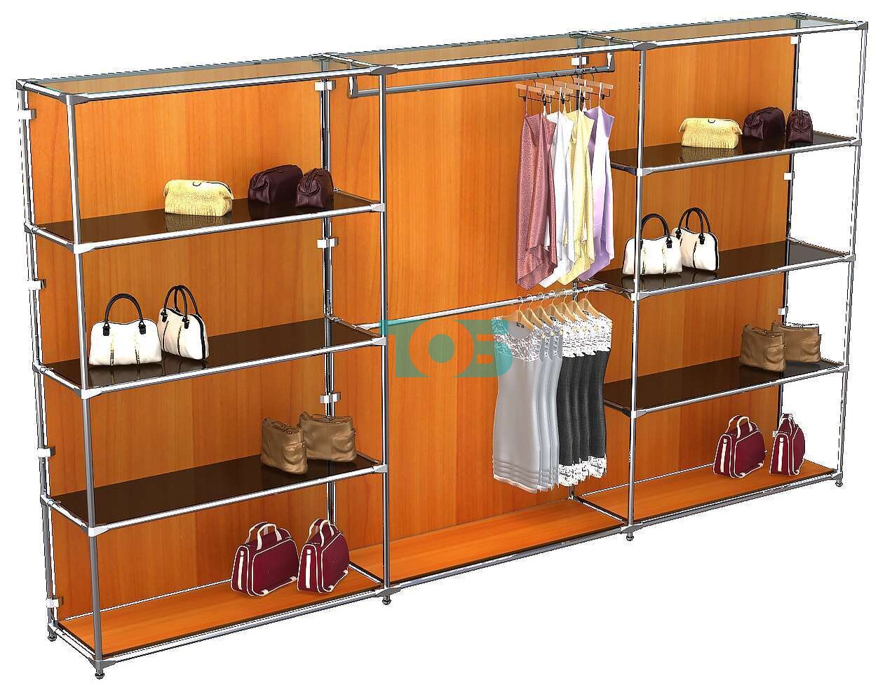 Отличия модели торговой системы ХРОМ (задняя стенка - ДСП) 3600 мм с тонированными полками и поручнями №1: