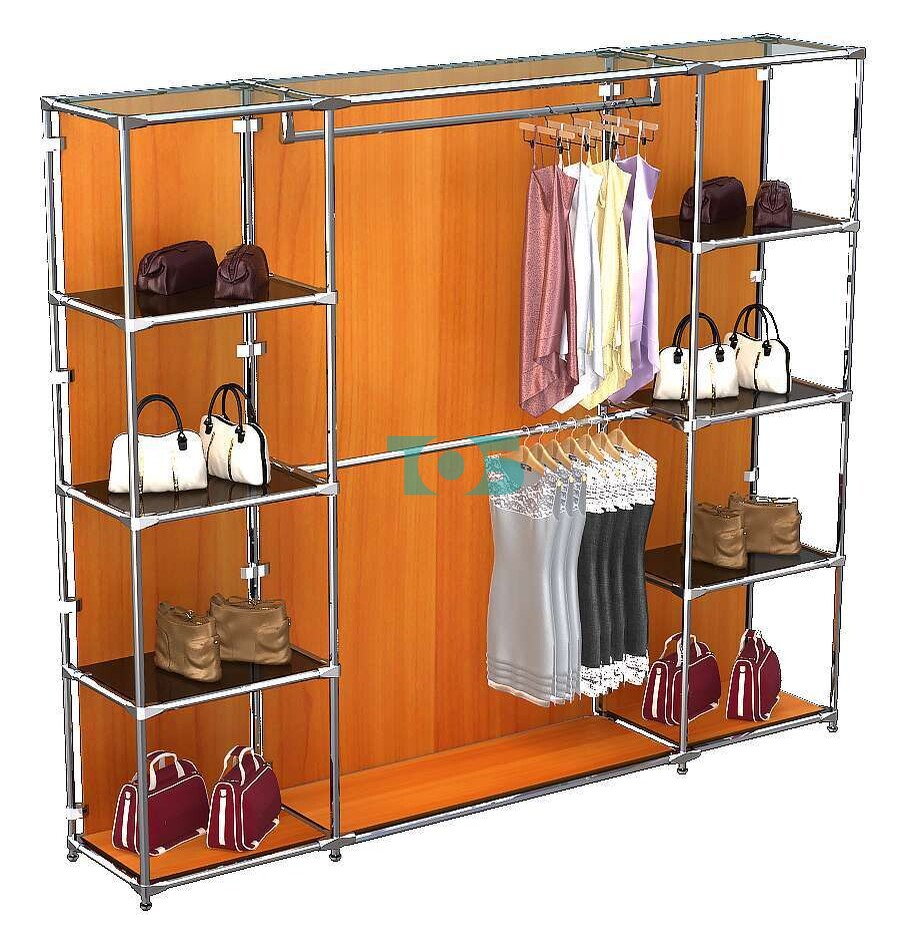 Отличия модели торговой системы ХРОМ (задняя стенка - ДСП) 2430 мм с тонированными полками и поручнями №3:
