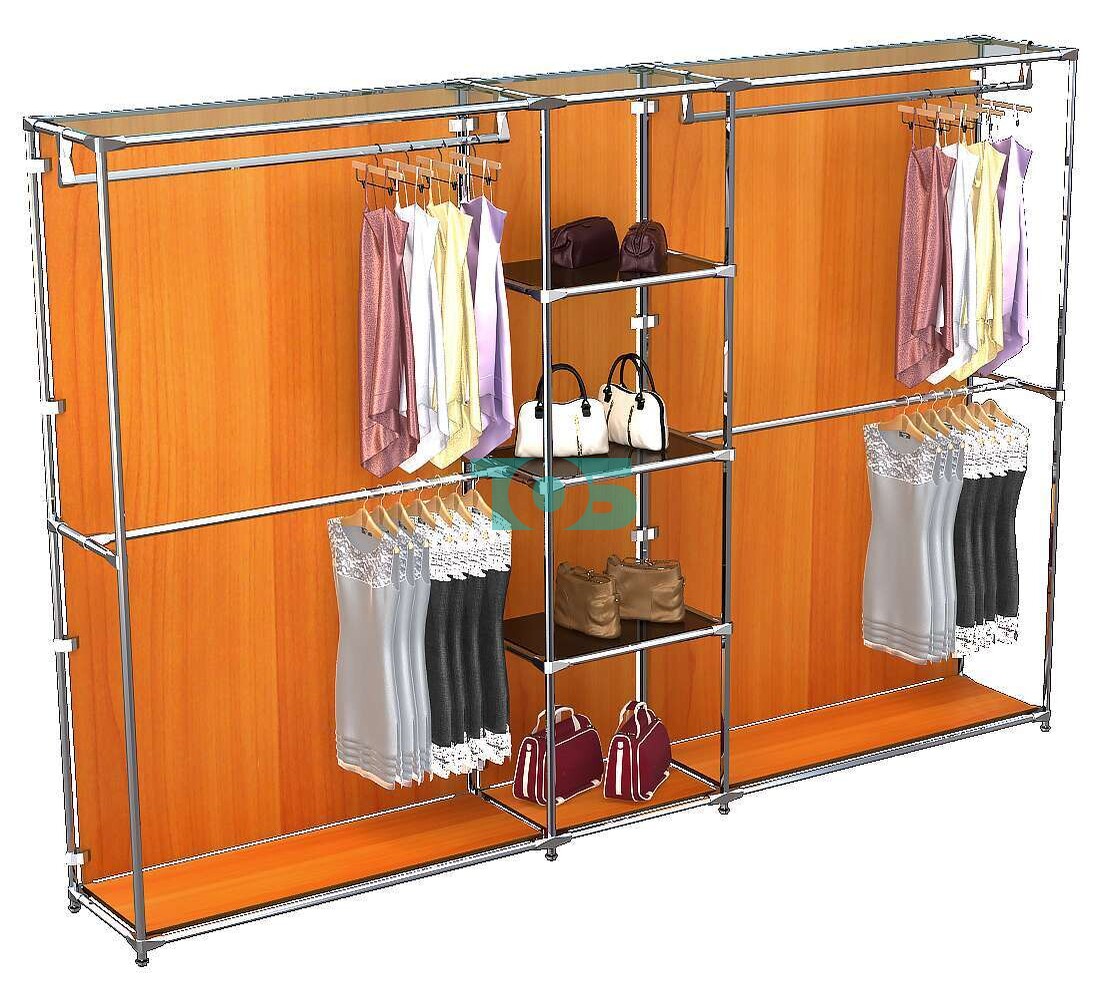 Отличия модели торговой системы ХРОМ (задняя стенка - ДСП) 3030 мм с тонированными полками и поручнями №4: