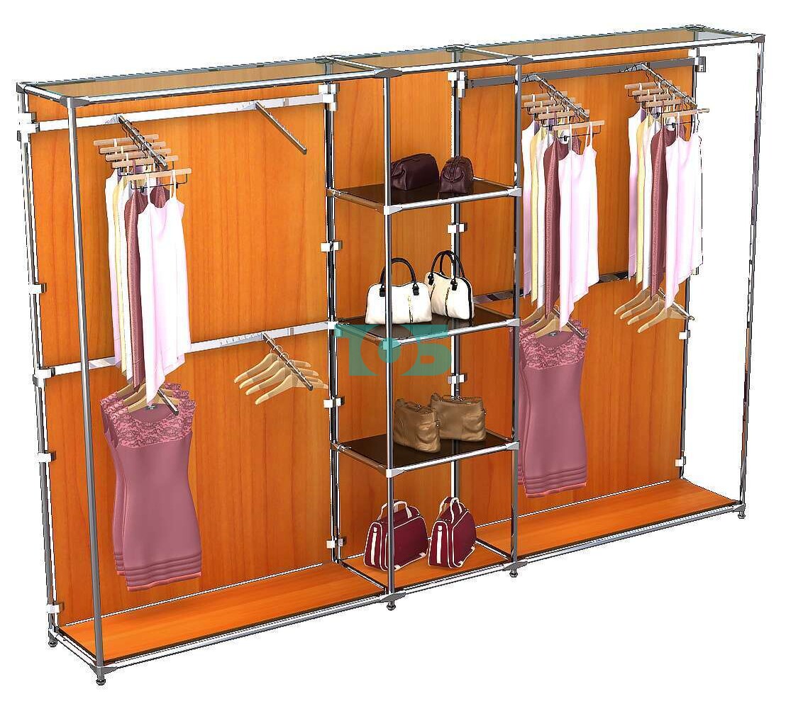 Отличия модели торговой системы ХРОМ (задняя стенка - ДСП) 3030 мм с тонированными полками и поручнями №8: