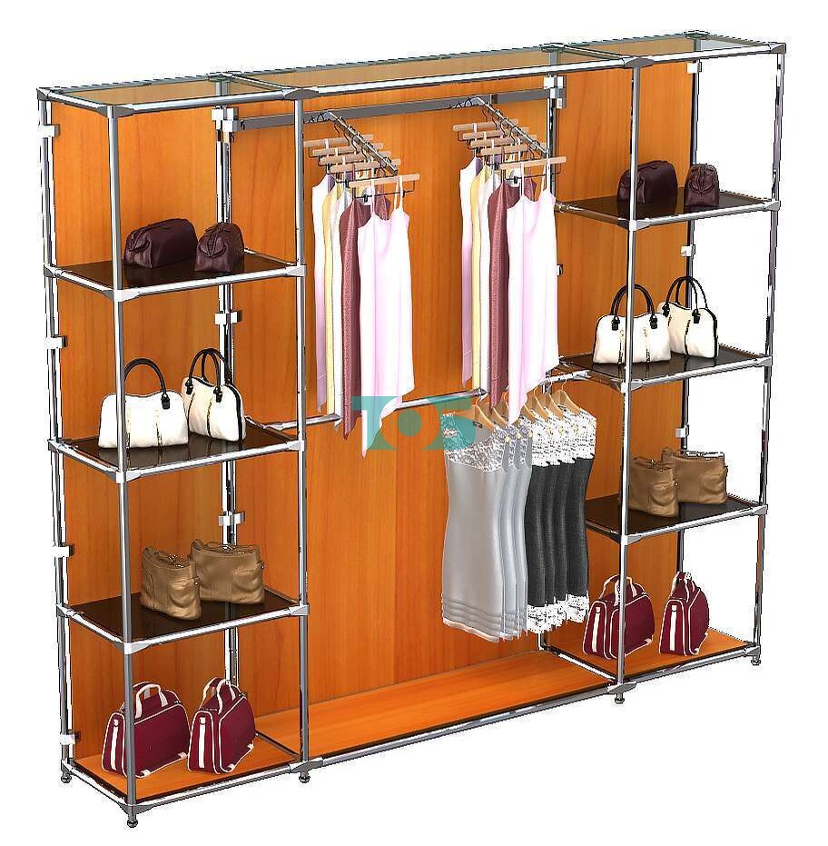 Отличия модели торговой системы ХРОМ (задняя стенка - ДСП) 2430 мм с тонированными полками и поручнями №11: