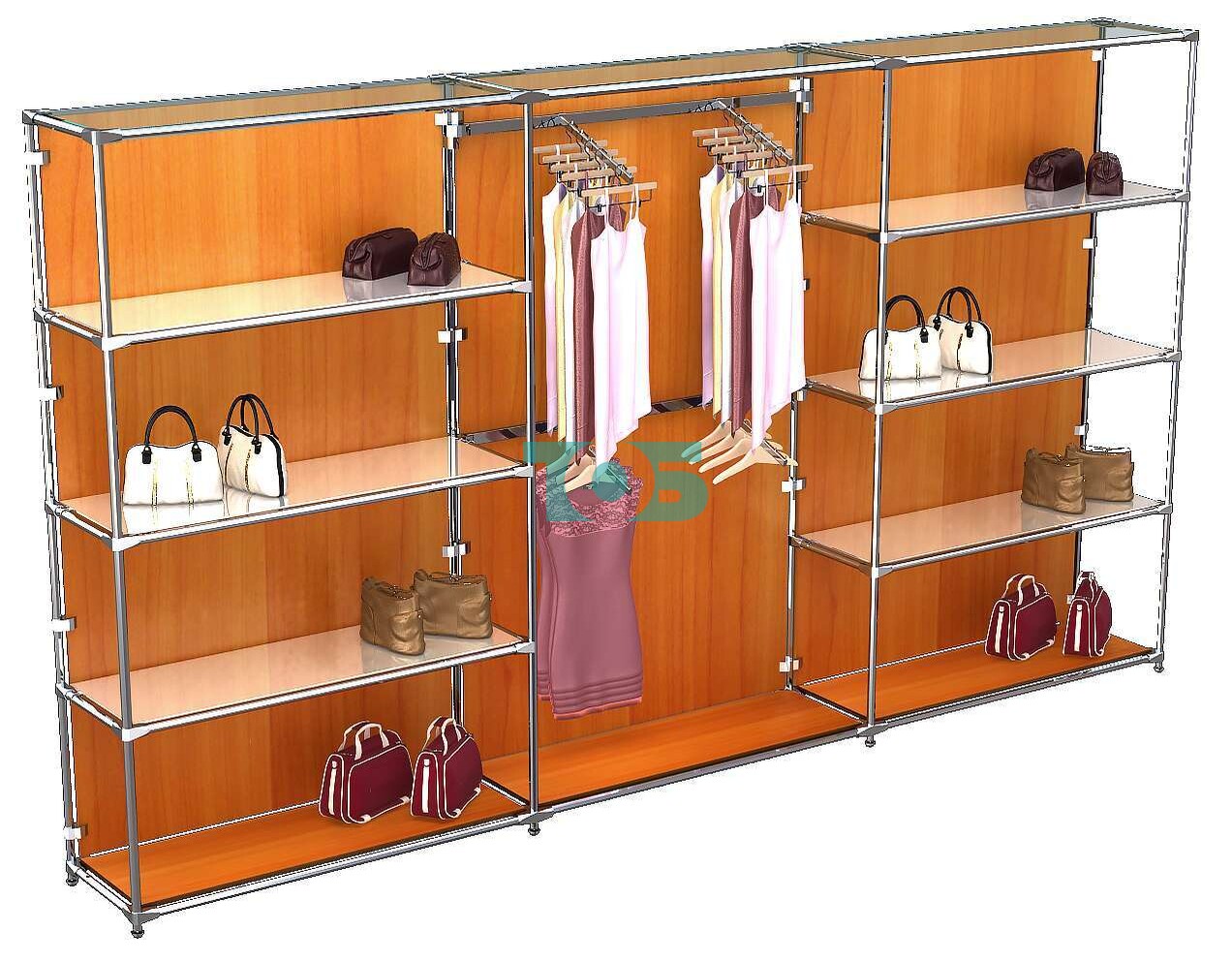Отличия модели торговой системы ХРОМ (задняя стенка - ДСП) 3600 мм с зеркальными полками и поручнями №6: