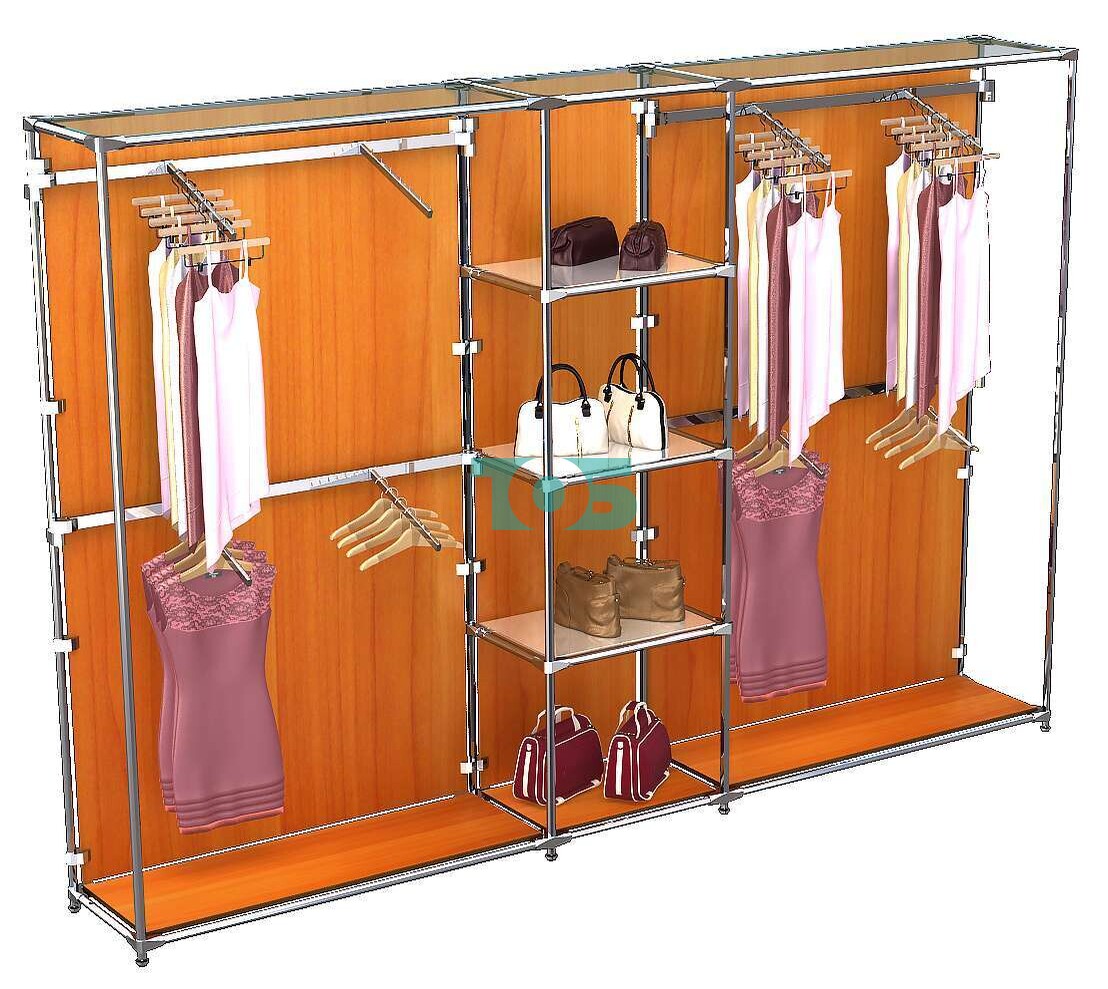 Отличия модели торговой системы ХРОМ (задняя стенка - ДСП) 3600 мм с зеркальными полками и поручнями №8: