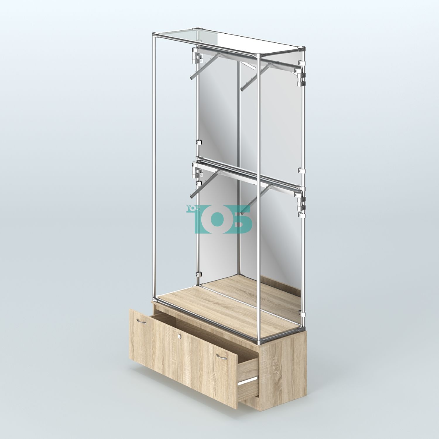 Главная Каталог Пристенные системы для торговли одеждой Торговая модульная система ХРОМ для магазина одежды Торговая система ХРОМ с поручнями для магазина одежды Торговая система ХРОМ (задняя стенка - зеркало) 1200 мм с тумбами и поручнями