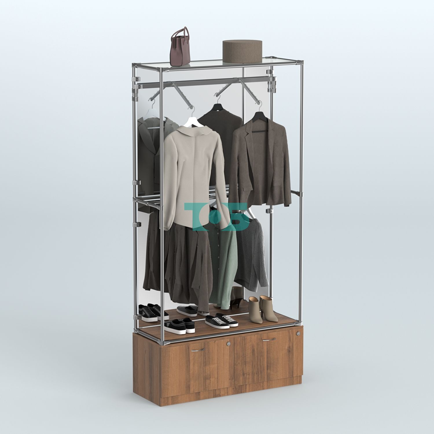 Главная Каталог Пристенные системы для торговли одеждой Торговая модульная система ХРОМ для магазина одежды Торговая система ХРОМ с поручнями для магазина одежды Торговая система ХРОМ (задняя стенка - зеркало) 1200 мм с тумбами и поручнями