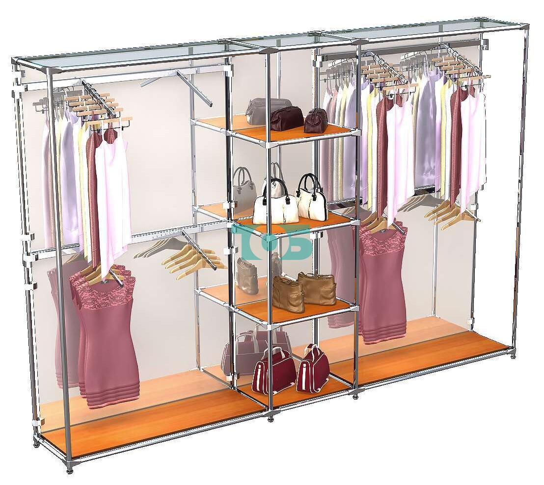 Отличия модели торговой системы ХРОМ (задняя стенка - зеркало) 3030 мм с полками ДСП и поручнями №8: