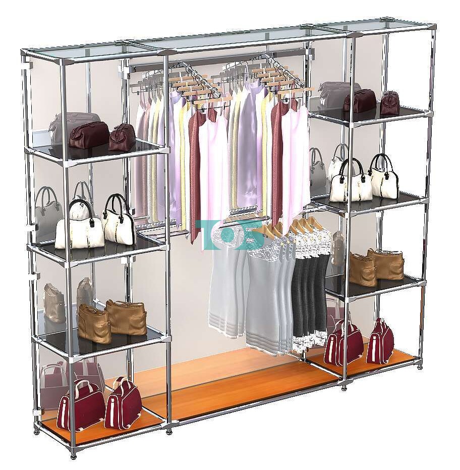 Отличия модели торговой системы ХРОМ (задняя стенка - зеркало) 2430 мм с тонированными полками и поручнями №11: