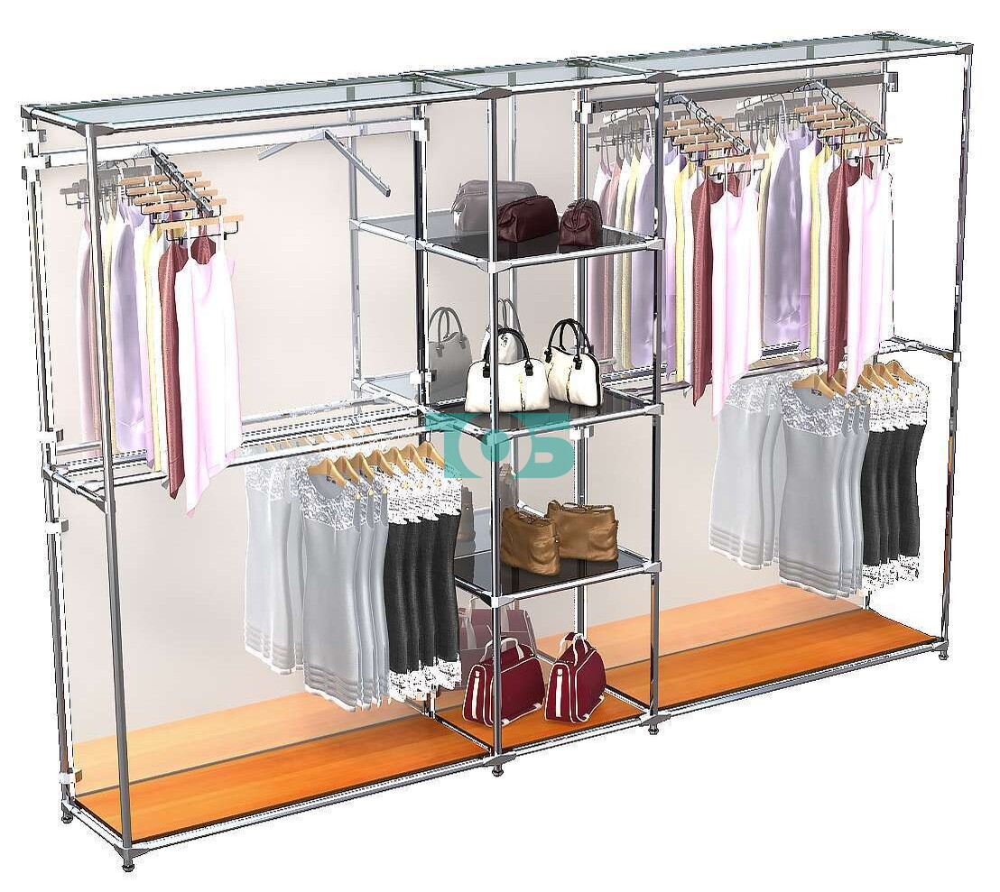Отличия модели торговой системы ХРОМ (задняя стенка - зеркало) 3030 мм с тонированными полками и поручнями №12: