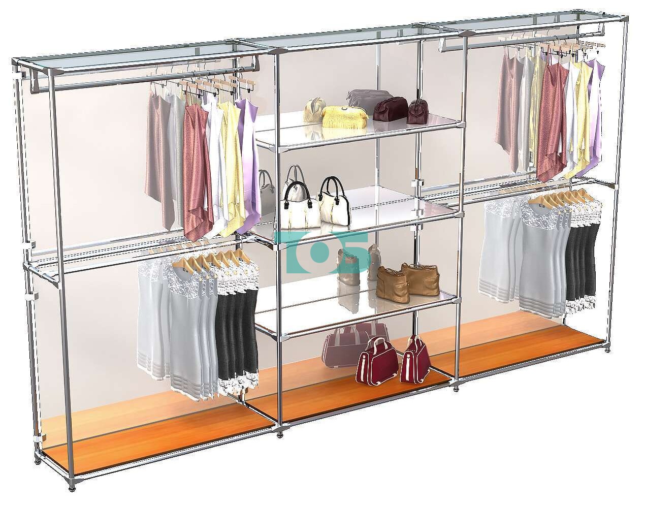 Отличия модели торговой системы ХРОМ (задняя стенка - зеркало) 3600 мм с зеркальными полками и поручнями №2: