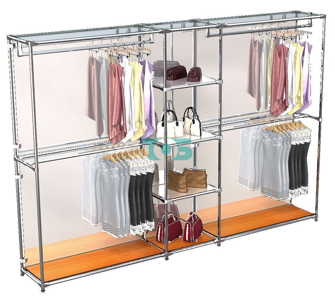 Отличия модели торговой системы ХРОМ (задняя стенка - зеркало) 3600 мм с зеркальными полками и поручнями №4: