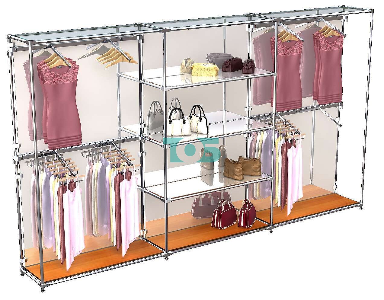 Отличия модели торговой системы ХРОМ (задняя стенка - зеркало) 3600 мм с зеркальными полками и поручнями №5: