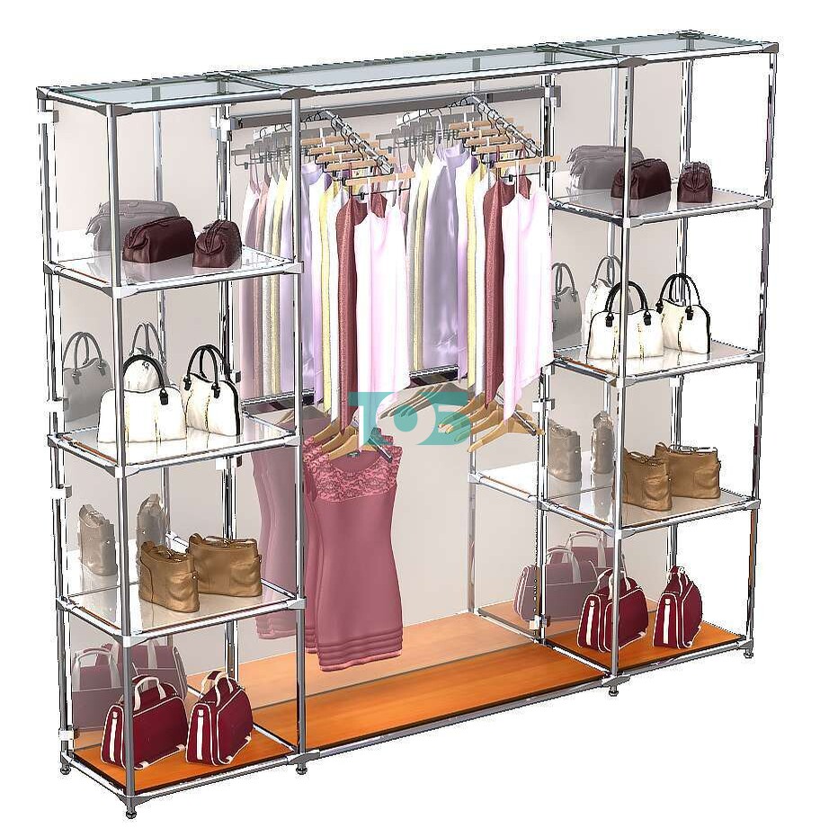 Отличия модели торговой системы ХРОМ (задняя стенка - зеркало) 3600 мм с зеркальными полками и поручнями №7: