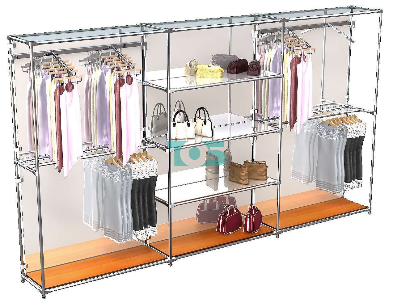 Отличия модели торговой системы ХРОМ (задняя стенка - зеркало) 3600 мм с зеркальными полками и поручнями №10: