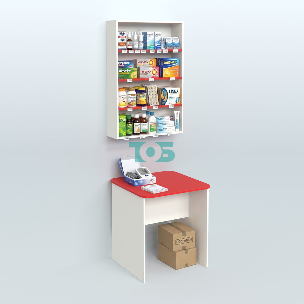 - хозяйственные столы для аптеки из ламинированного ДСП надежны и удобны в использовании. Столы для аптеки изготавливается из современных и качественных материалов и является самым необходимым модулем из аптечной торговой мебели. Стол укомплектован антресолью, которую можно повесить на стену либо закрепить на сам стол. Предназначен для использования в зоне продавца.