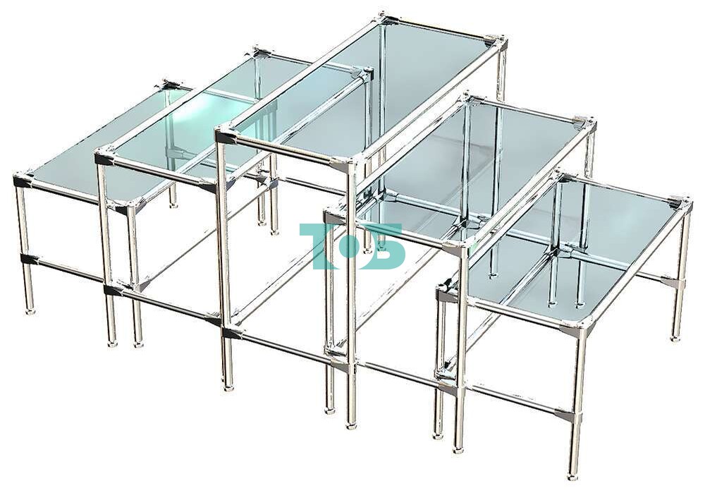 Отличия модели комплекта столов №2-1 с полками стекло 6 мм (прозрачное):