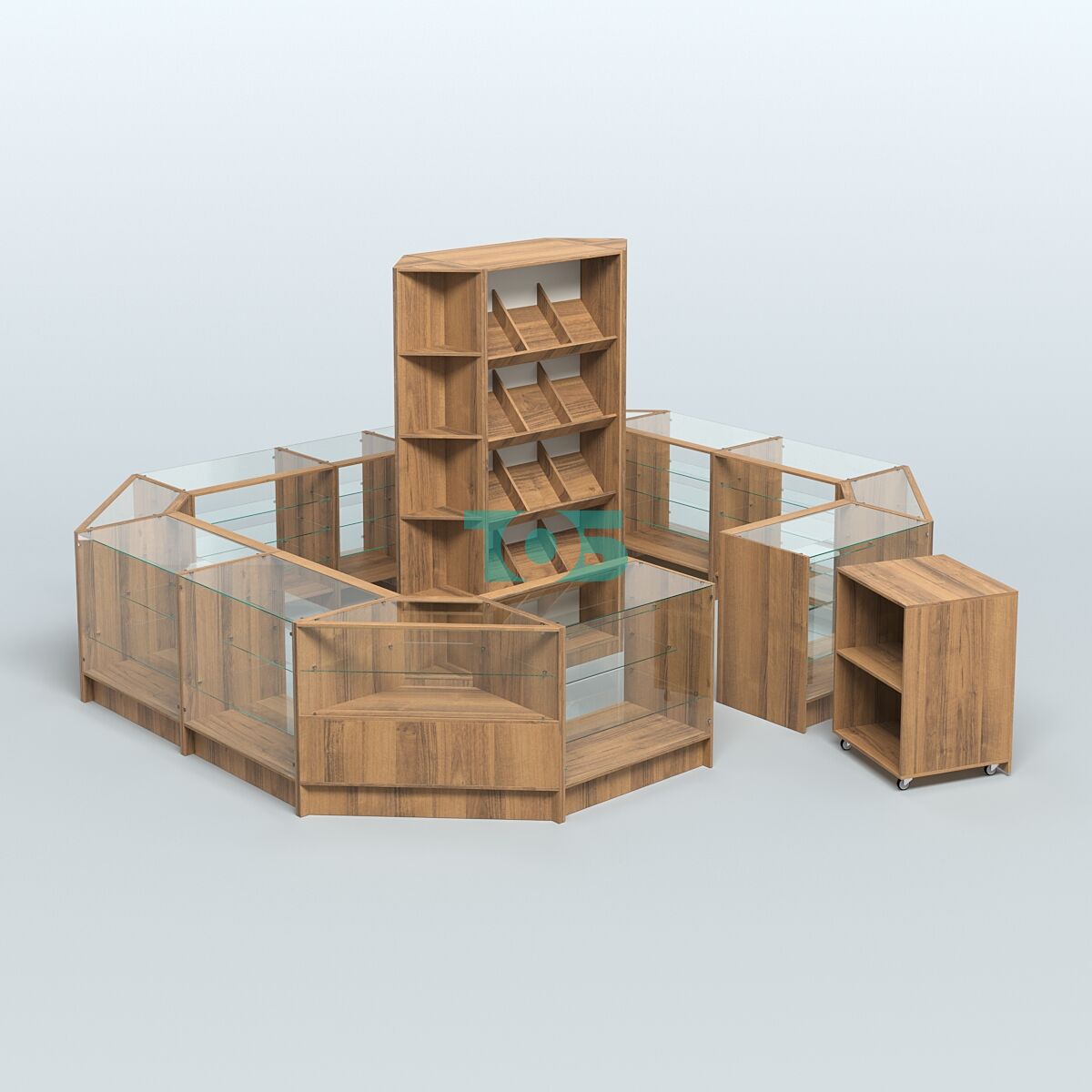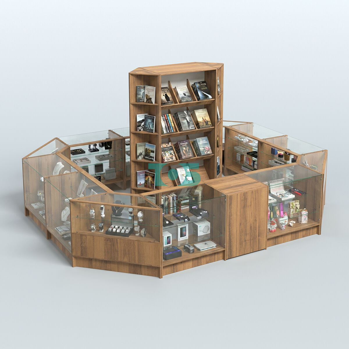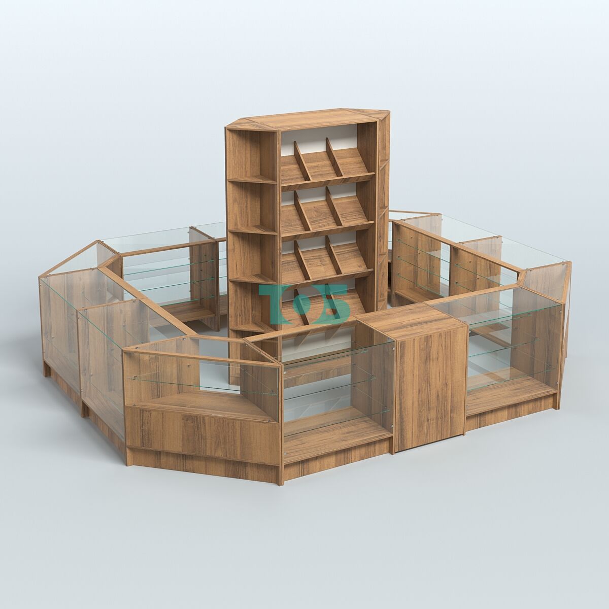 Витрины: со стороны продавца витрины открытые, что обеспечивает хороший обзор товаров и облегчает взаимодействие с покупателями.