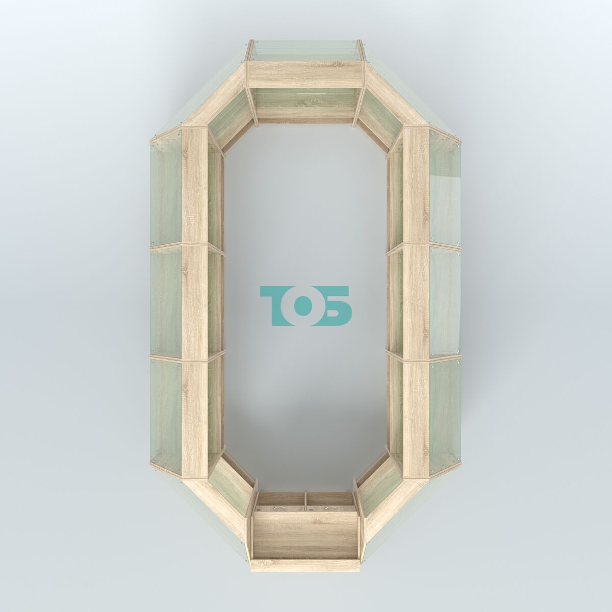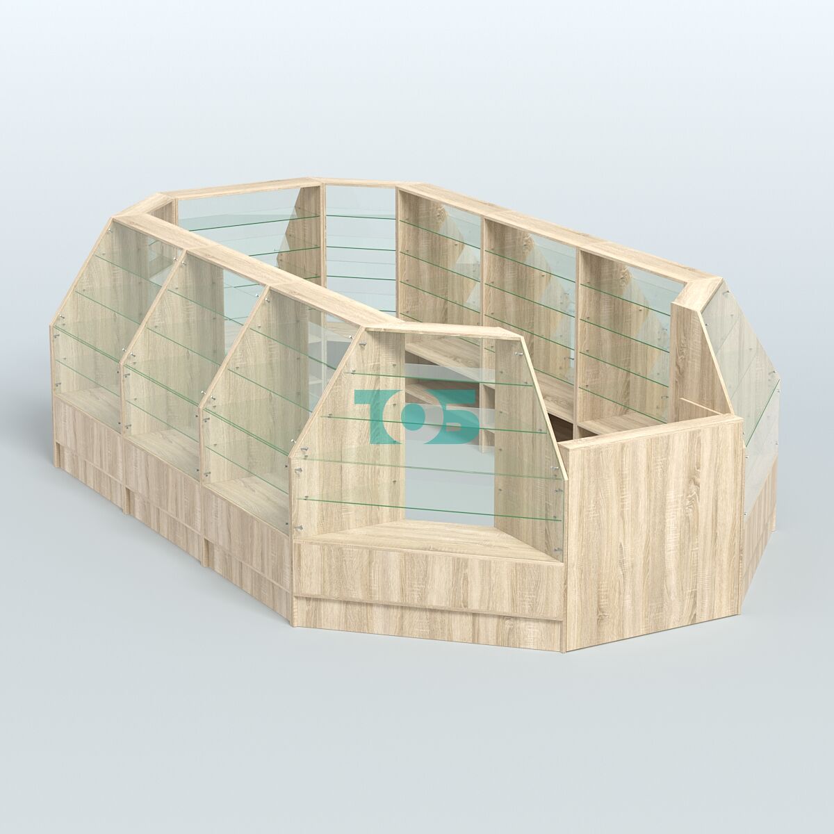 Низкий торговый остров предназначен для размещения в центре торгового зала.