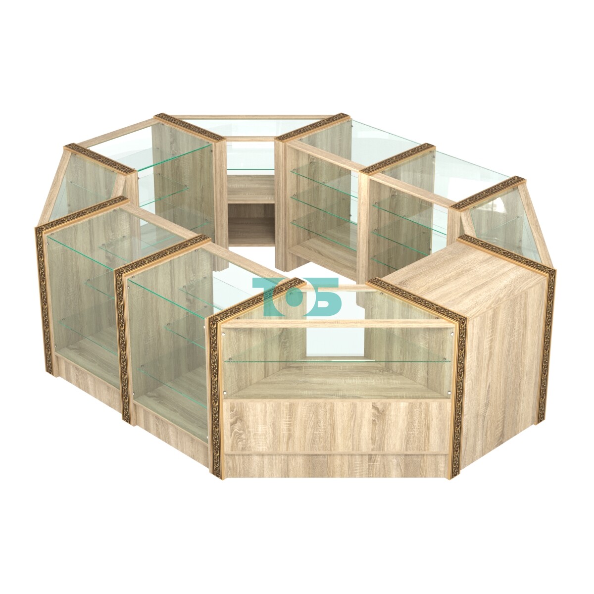 Отличия модели торгового островка с прозрачными полками и молдингами №2 (4,72 кв.м):