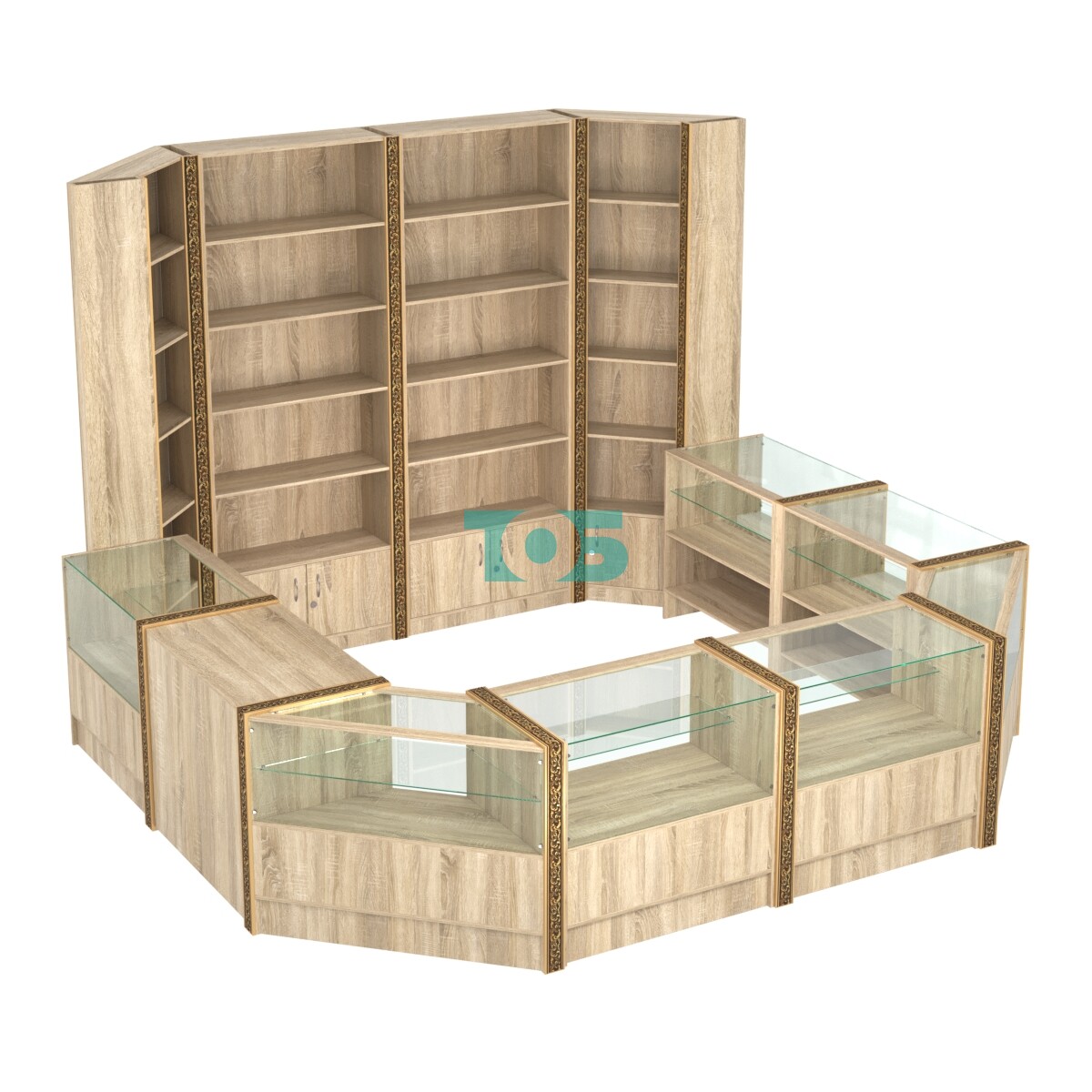 - торговый островок разработан для размещения в центре зала;