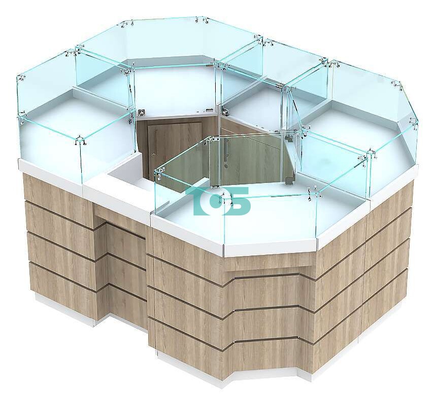 - островок удобен в использовании и включает все необходимое для начала торговли, а модульный принцип позволяет при изменении торговой площади добавлять или убирать необходимое количество модулей;